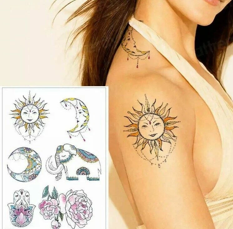 6x Designs Hamsa Hand Sun Moon Elephant Roses Temporary Tattoos Sticker Women Ebay